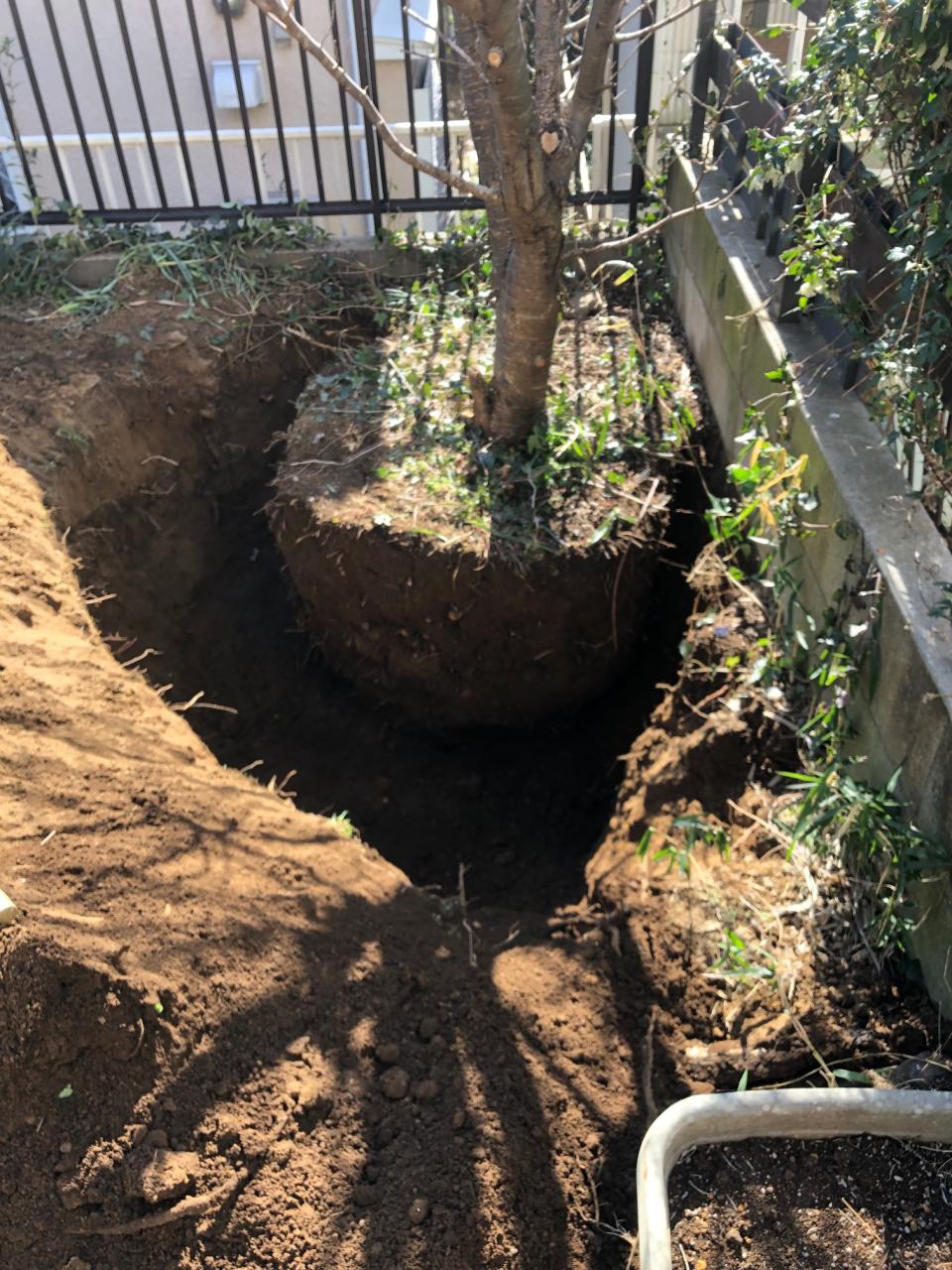 移植作業は大きく根鉢をとって掘っていきます。