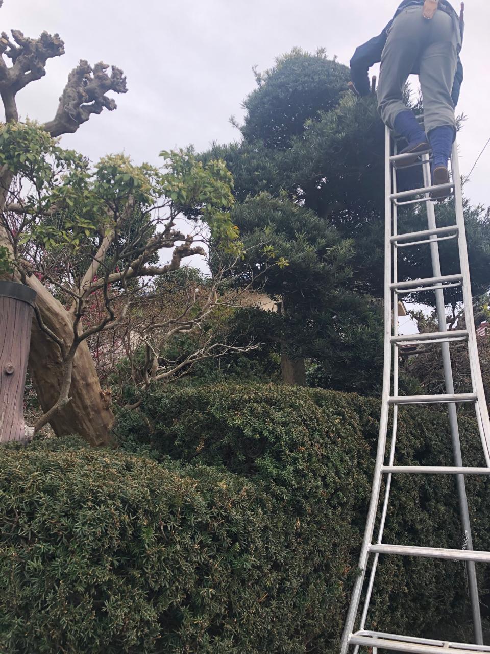 通常の脚立では届かない大きな木も安全にお手入れすることができます。